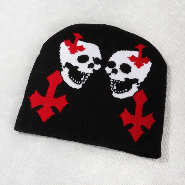 หมวกไหมพรมอะคริลิคสำหรับทั้งชายและหญิงหมวกถักแนวสปอร์ตหมวกถักลายพิมพ์หัวกะโหลกสองใบหมวกบีนนี่ออกแบบได้ตามต้องการ100%