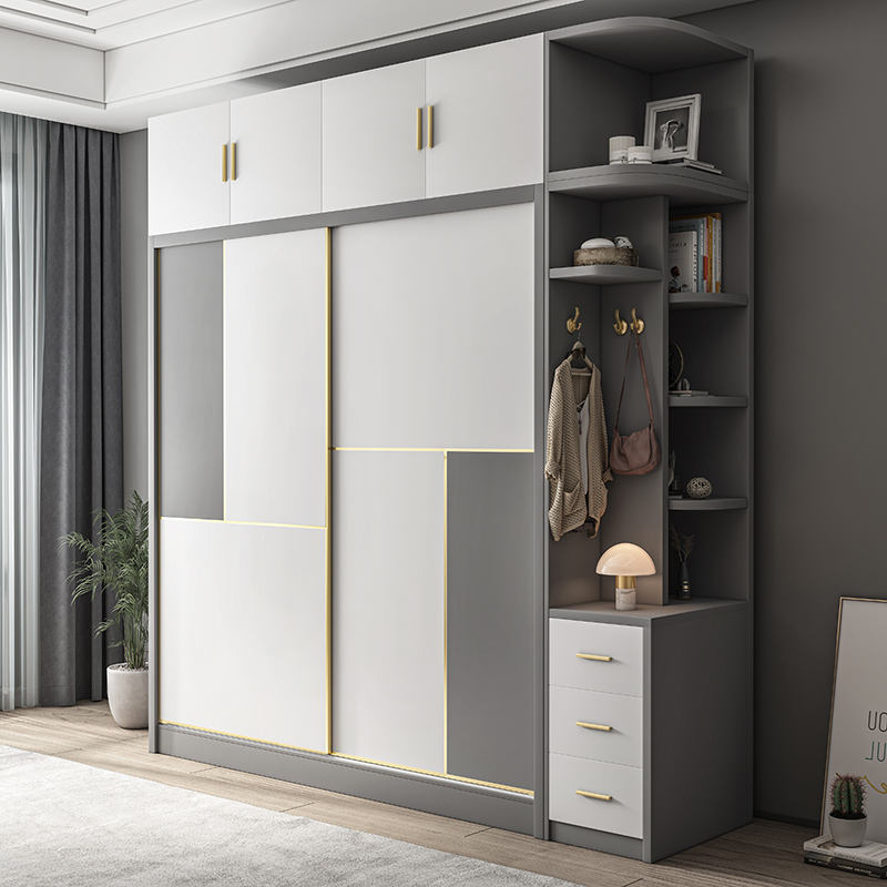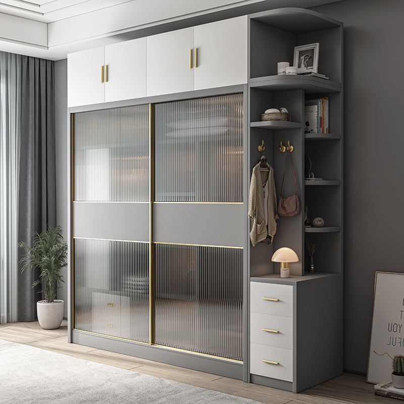 ชื่อ:ประตูบานเลื่อนกระจกสีเทาเกรดสูงตู้เสื้อผ้าอเนกประสงค์