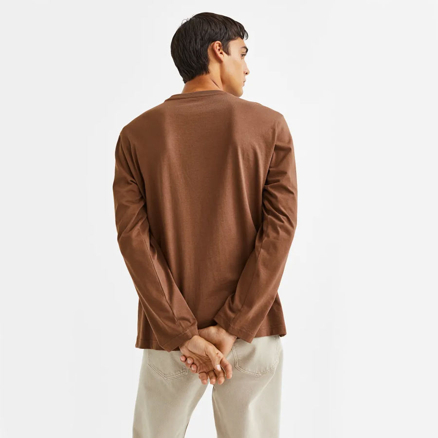 เสื้อยืดแขนยาวผู้ชายถักนิตติ้งผ้าฝ้าย 100% ขายดีที่สุด พร้อมโลโก้และดีไซน์สั่งทำพิเศษ ป้องกันรอยยับ เป็นมิตรต่อสิ่งแวดล้อม
