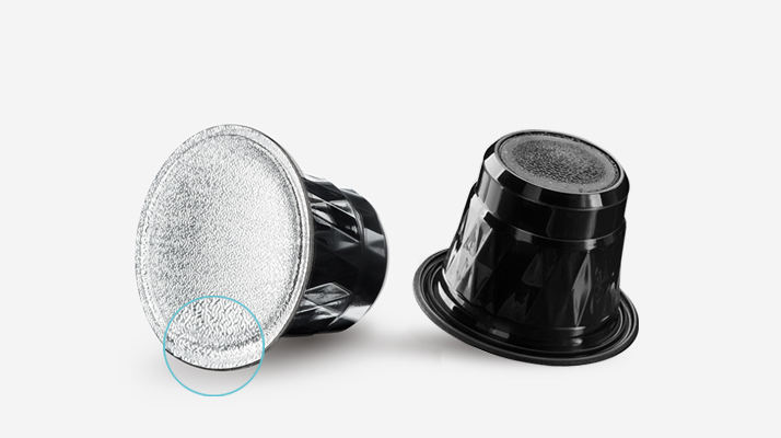 ภาชนะใส่กาแฟเนสเปรสโซ่แบบย่อยสลายได้ภาชนะใส่กาแฟเปล่าแคปซูลพร้อมฝาอลูมิเนียมทำจากพลาสติกและ PPS