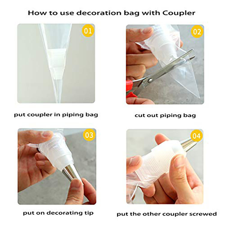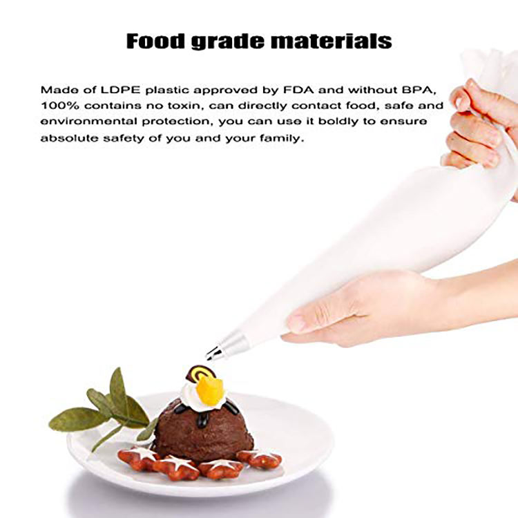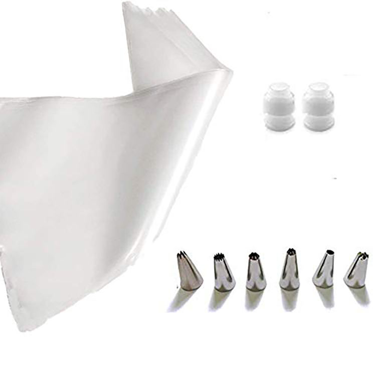 ชุดถุงบีบครีมแบบใช้แล้วทิ้ง ผลิตจากพลาสติกย่อยสลายได้ตามสั่ง พร้อมหัวบีบแบบต่างๆ สำหรับทำขนมเค้กและขนมอบ
