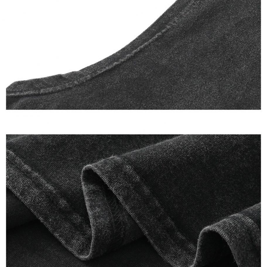 เสื้อยืดสีดำแบบกำหนดเอง 100% ผ้าฝ้าย ซีรีส์ไฮสตรีท ล้างสีแบบแอซิด พิมพ์ลายตัวอักษร แขนกุด ทรงหลวม