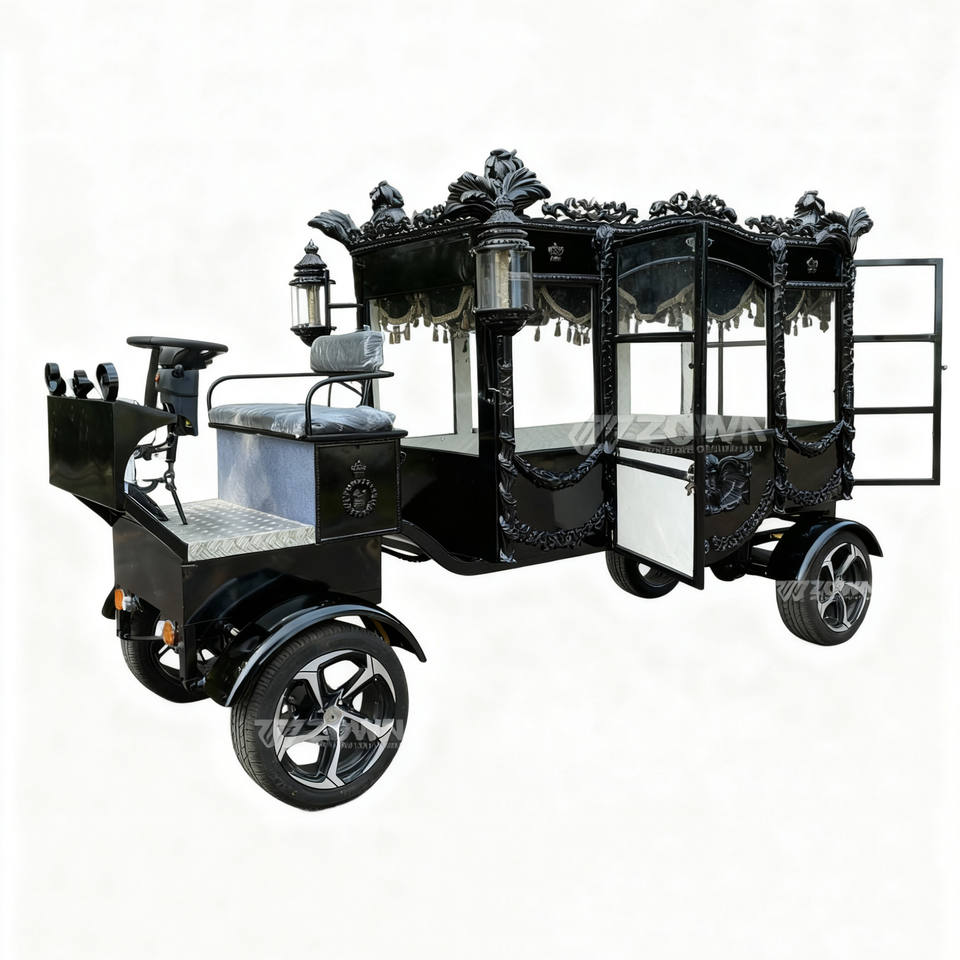 รถม้าศพไฟฟ้าสีดำแบบกำหนดเอง 4 ล้อ ใหม่เอี่ยม สไตล์คลาสสิกโบราณ สำหรับขนส่งโลงศพ ราคาดี