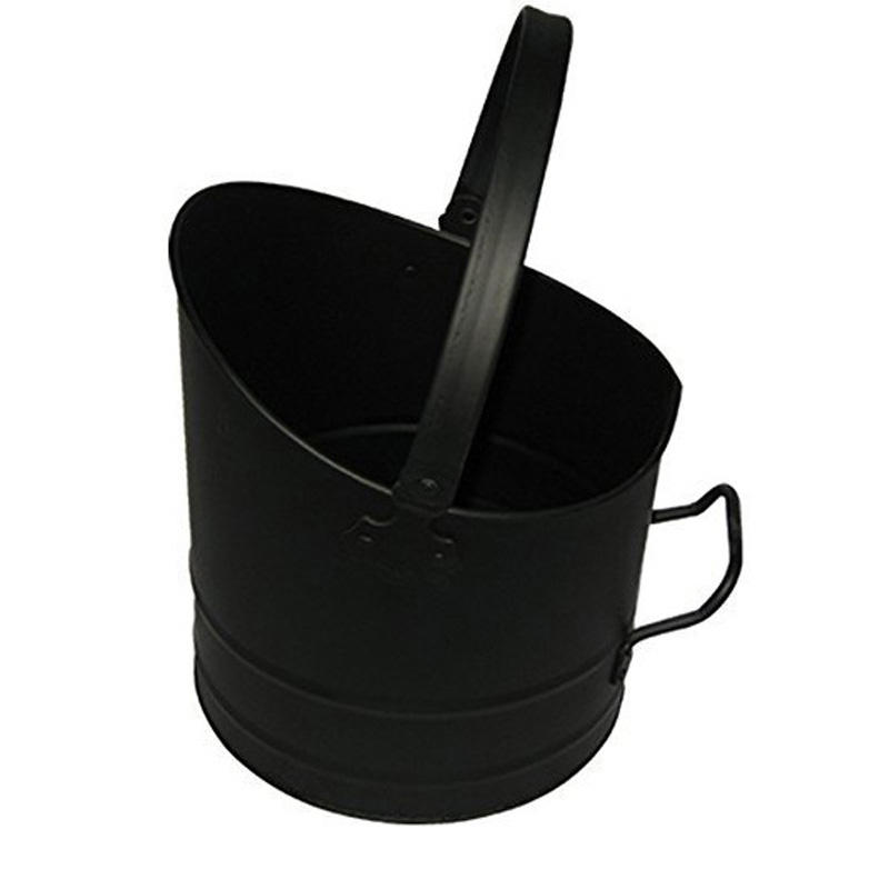 ถังใส่ถ่านแบบมีหูจับ สไตล์ยุโรปสมัยใหม่ เป็นมิตรกับสิ่งแวดล้อม ผลิตจากโลหะเคลือบสีดำ สำหรับใช้ในบ้าน สวน หรือเตาผิงกลางแจ้ง