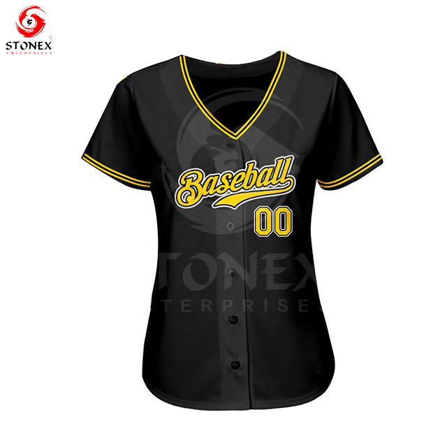 เสื้อเจอร์ซีย์แท้สีดำทอง-ขาวออกแบบได้ตามต้องการเสื้อซอฟต์บอลสำหรับผู้ชายดีไซน์พรีเมียม