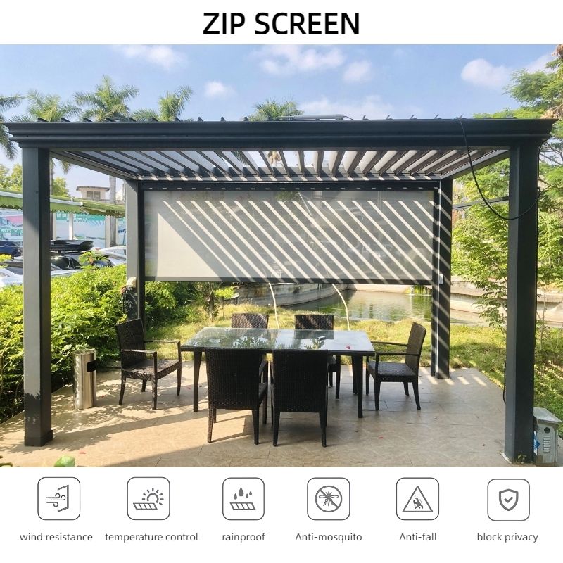 ม่านม้วนกันลมแบบซิปสำหรับเพอร์โกลา ป้องกันแสงและระบายอากาศได้ดี ปรับแต่งได้ตามต้องการ
