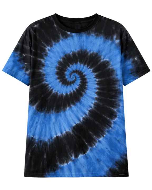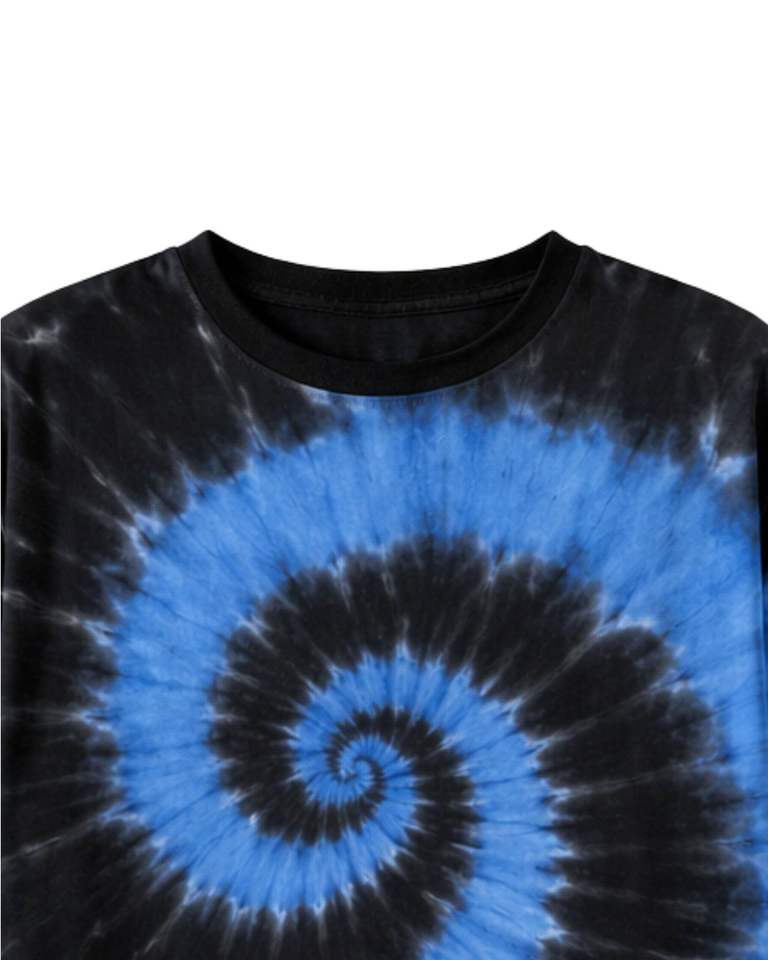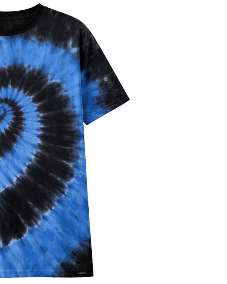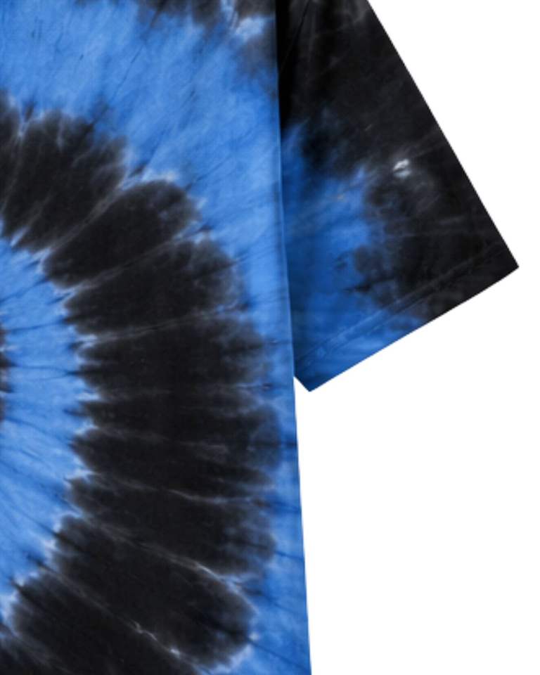 เสื้อยืดสีน้ำเงินดำลายมัดย้อมแบบสไปรัลสำหรับผู้ชาย ผ้าฝ้ายลำลอง สตรีทแวร์ คอกลม แขนสั้น แฟชั่นฤดูร้อน