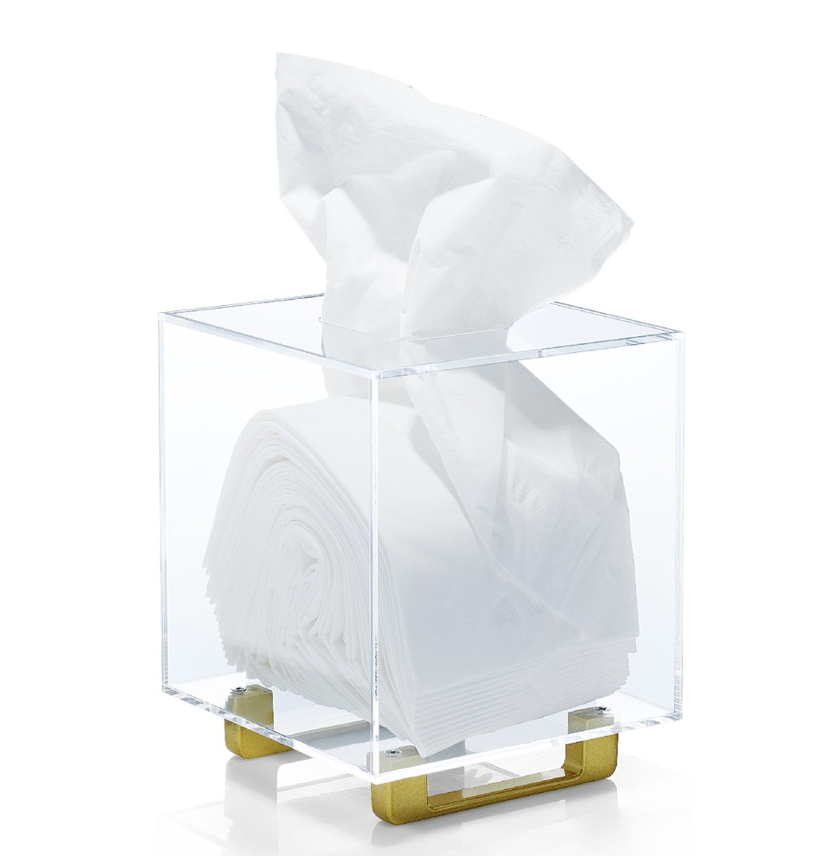 กล่องทิชชู่อะคริลิคทองเหลืองออกแบบได้ตามต้องการสำหรับใส่ผ้าเช็ดปากบนใบหน้าในห้องน้ำทรงสี่เหลี่ยมผืนผ้าขายดี