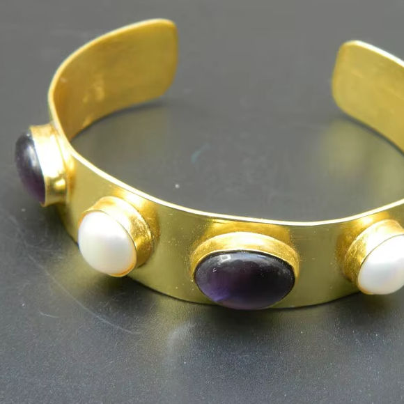 กำไลทองเหลืองทำจากเรซินหลากสีประดับด้วยหินทองเหลืองดูทันสมัยใช้ได้ทั่วโลกในต่างประเทศ