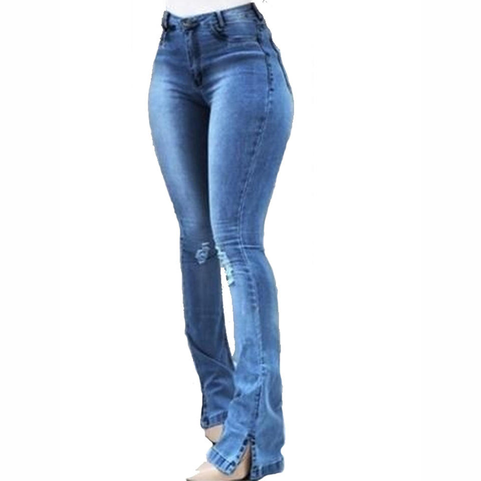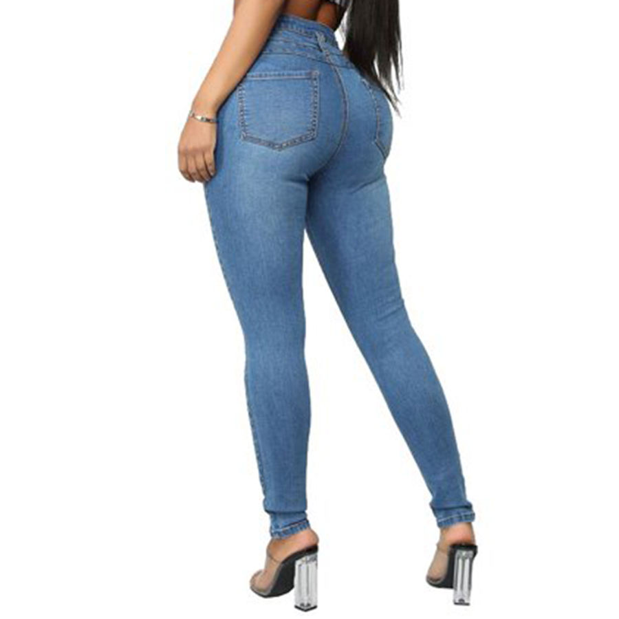 กางเกงยีนส์ผู้หญิงเอวสูงทรงสกินนี่สีน้ำเงินแบบสั่งทำพิเศษ ระบายอากาศได้ดี ผ้าฝ้าย ใหม่ ขายส่ง