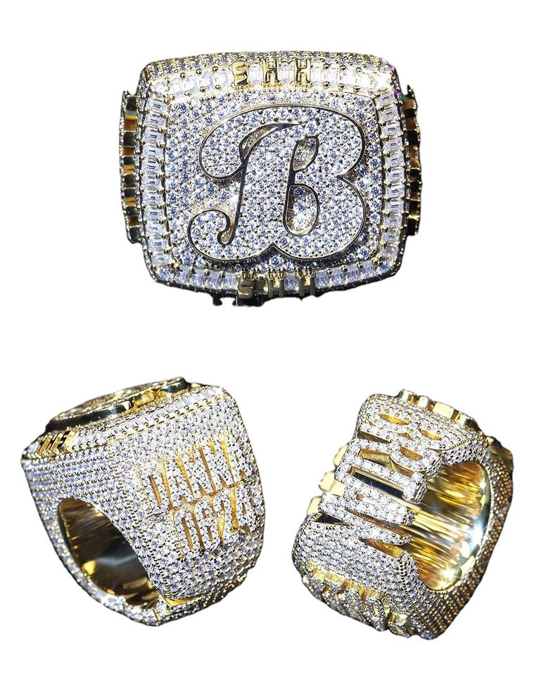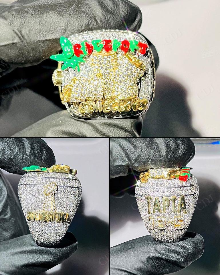 แหวนแชมเปี้ยนส์สไตล์ฮิปฮอปชุบทองประดับมอสซาไนต์ทรงบาแกตต์เจียระไนแบบพิเศษ ได้รับการรับรองจาก GRA ดีไซน์ยอดนิยมสำหรับทุกเพศ