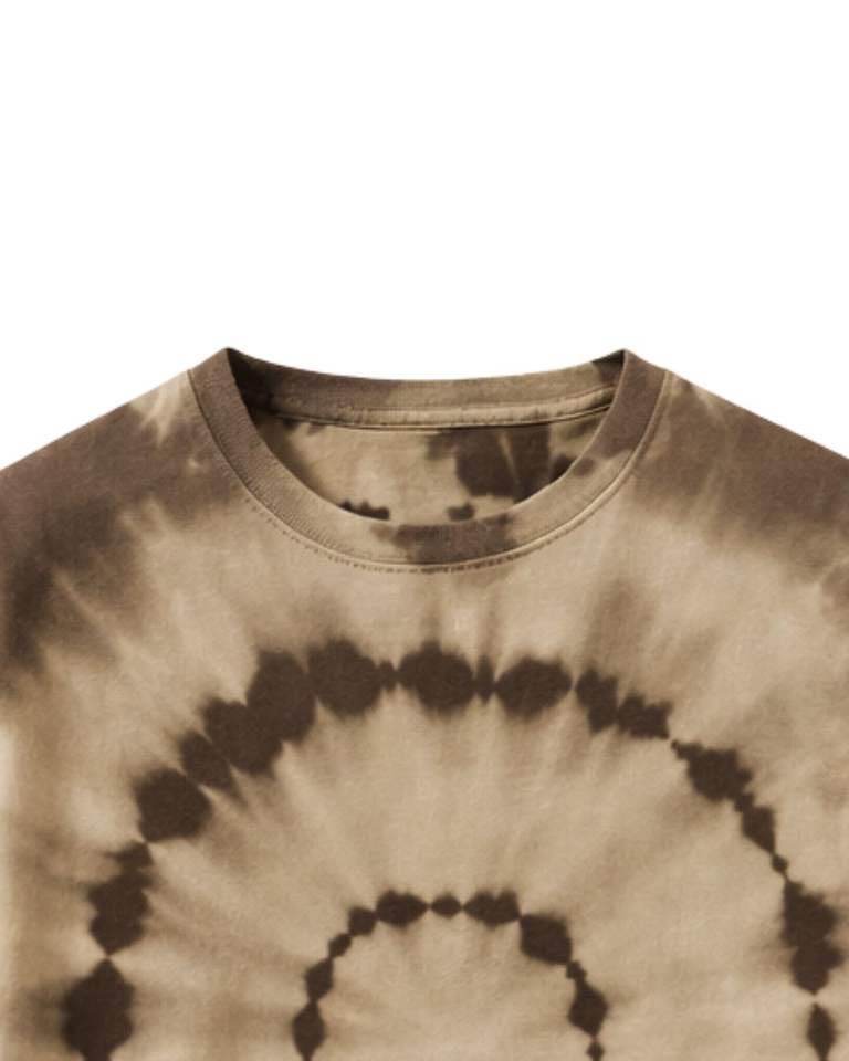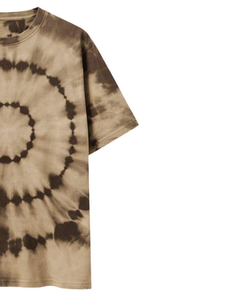 เสื้อยืดคอกลมสีน้ำตาลเบจลายมัดย้อมแบบวงกลมสำหรับผู้ชาย ผ้าฝ้ายลำลอง สตรีทแวร์ แฟชั่นฤดูร้อน แขนสั้น