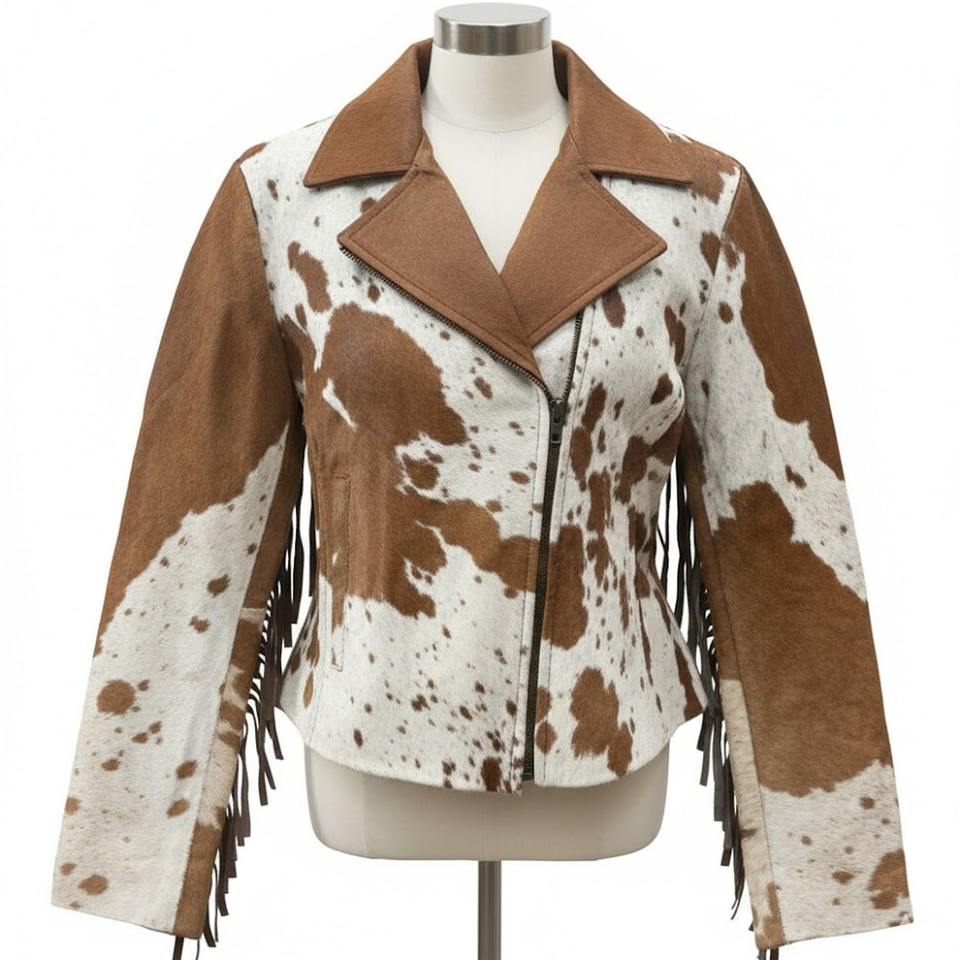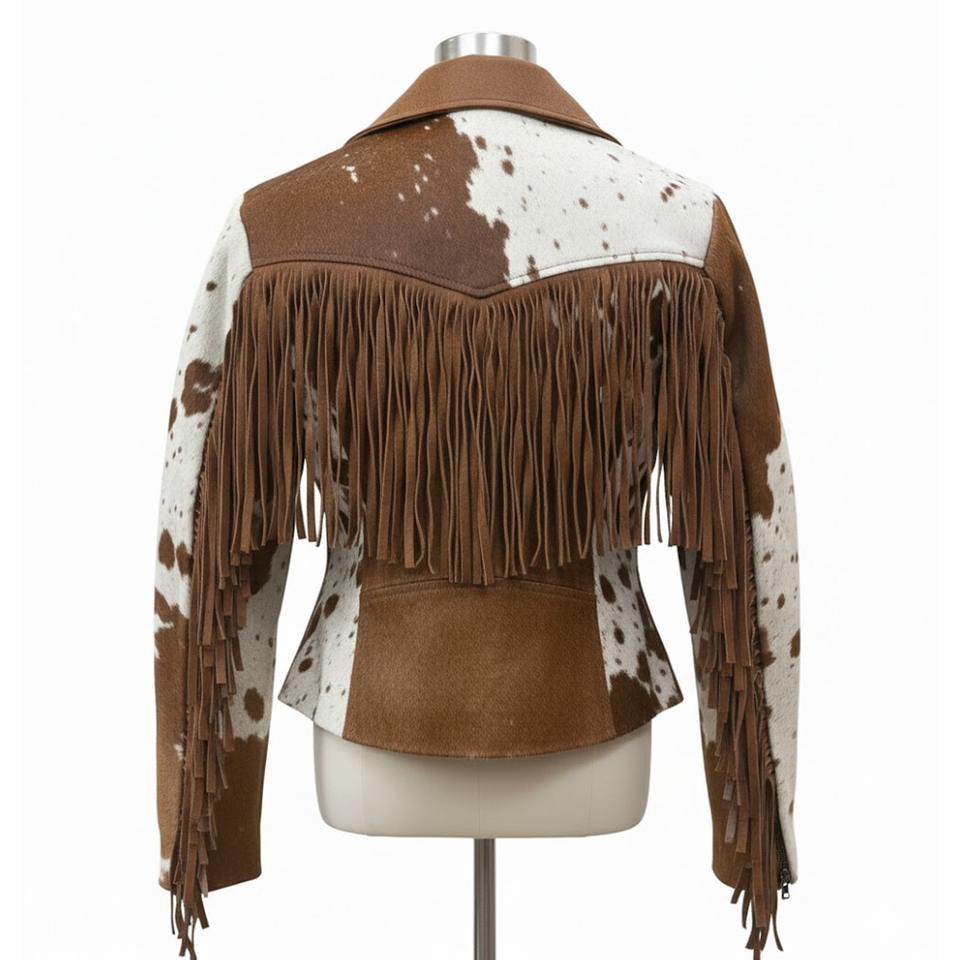 แจ็คเก็ตหนังวัวสีน้ำตาลแบบสั่งทำพิเศษสำหรับผู้ชายและผู้หญิง แจ็คเก็ตสไตล์ตะวันตกหนังแท้ทำมือ