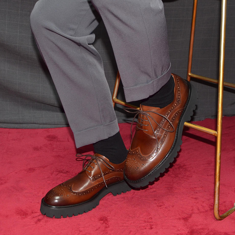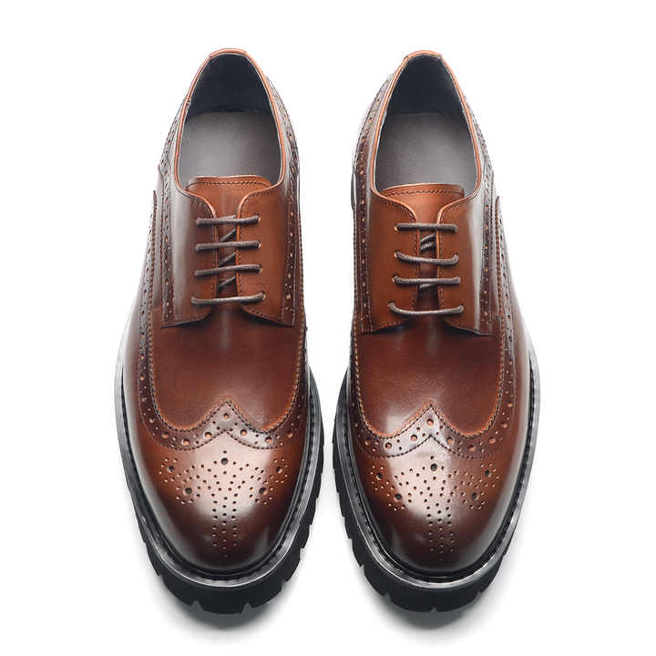 รองเท้าเดอร์บี้สั่งทำสีน้ำตาลแบบลำลองและเป็นทางการ งานแฮนด์เมด ดีไซน์สลักลาย หนังแท้คุณภาพสูง พื้นยางกันลื่น เหมาะสำหรับฤดูใบไม้ร่วง