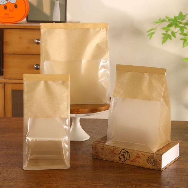ถุงบรรจุภัณฑ์อาหารกระดาษคราฟท์สีน้ำตาลแบบกำหนดเองพร้อมหน้าต่าง เหมาะสำหรับโดนัท ขนมปังปิ้ง ขนมปัง และแซนวิชของร้านเบเกอรี่ขนาดเล็ก