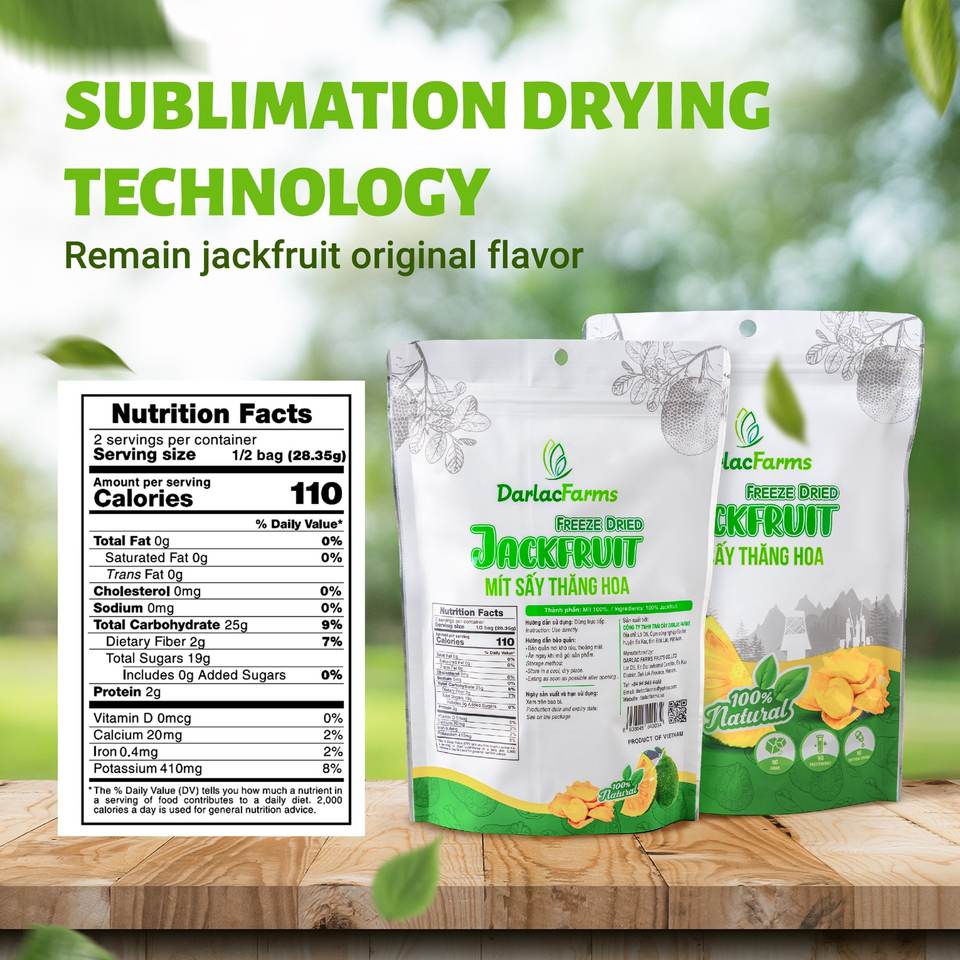 ขนุนอบแห้งแบบทอดอุณหภูมิต่ำ รสหวานแบบเวียดนาม ผลิตโดยฟาร์มดาร์ลัค บรรจุภัณฑ์สุญญากาศแบบหั่นเป็นชิ้น ผลิตตามสั่ง จำนวนมาก