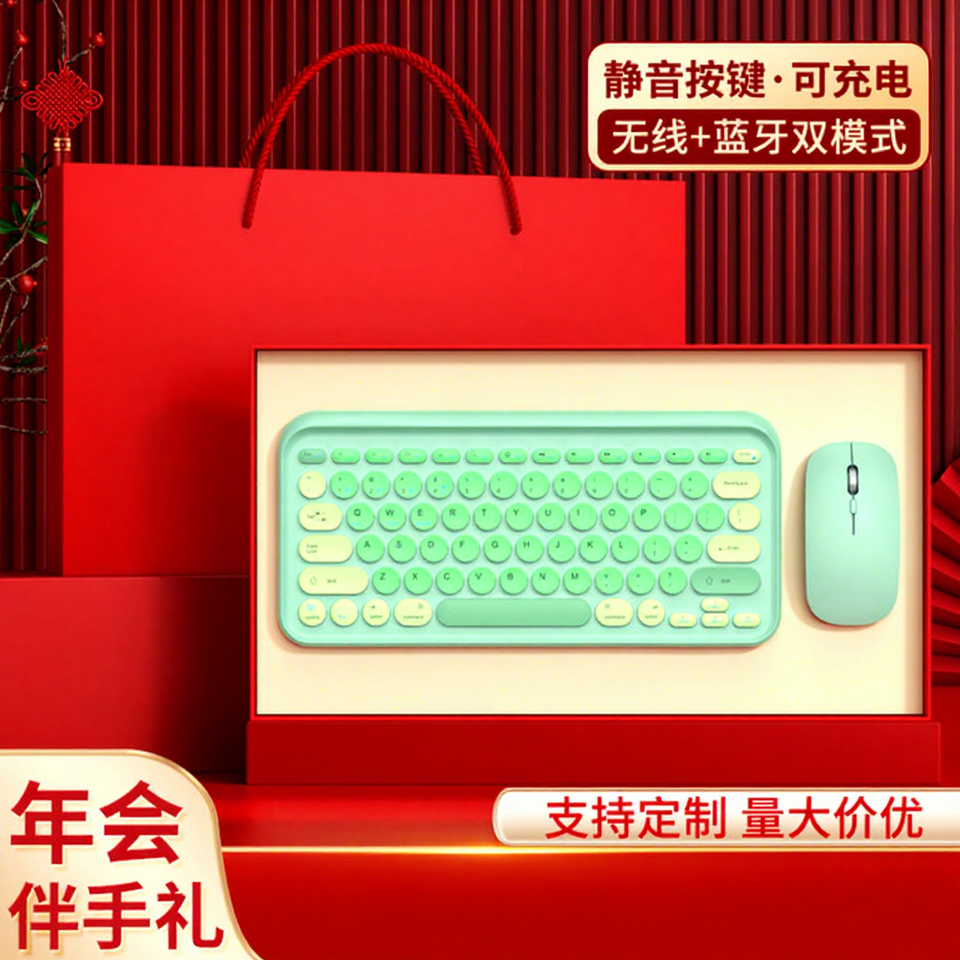Customized Business Gift Set Wireless Keyboard Mouse Combo PBT Material Digital Printing for Chinese New Year Employee Benefits