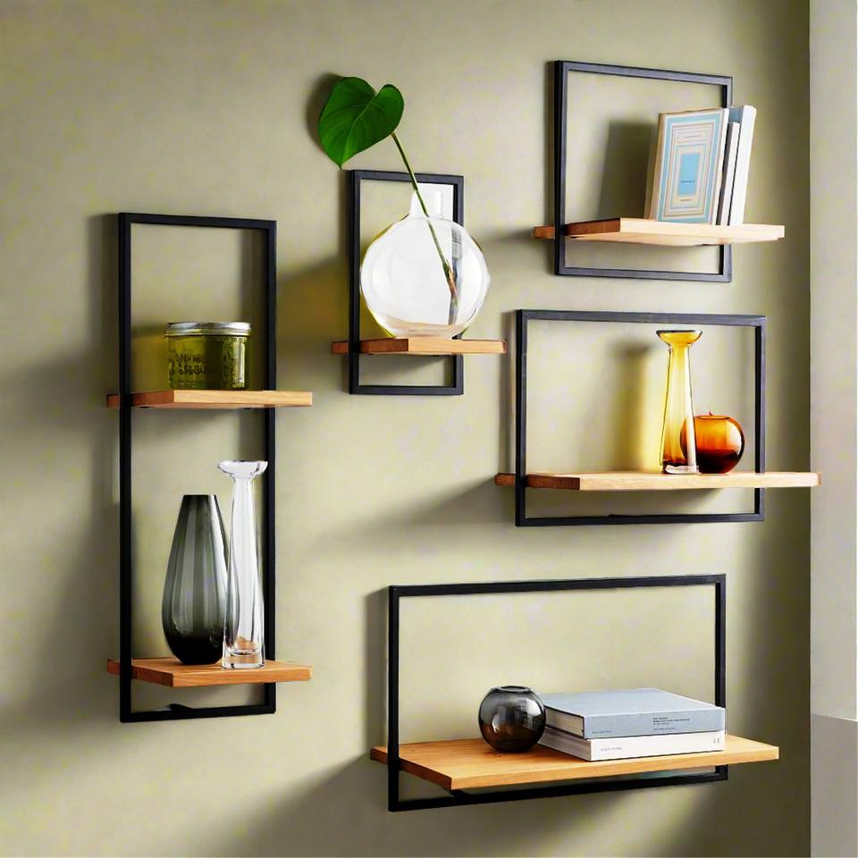 ที่เก็บของและชั้นวางงานฝีมือ ซื้อชุดชั้นวางติดผนังโลหะสำหรับติดตั้งงานศิลปะแกะสลักบนผนัง