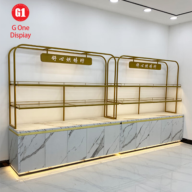 ตู้โชว์เค้กแบบกำหนดเอง ชั้นวางขนมปัง ตู้โชว์กระจก ป้ายไฟ LED เคาน์เตอร์ ตู้โชว์เบเกอรี่ไม้
