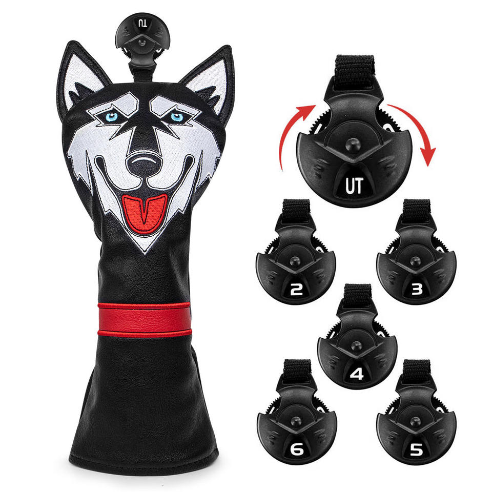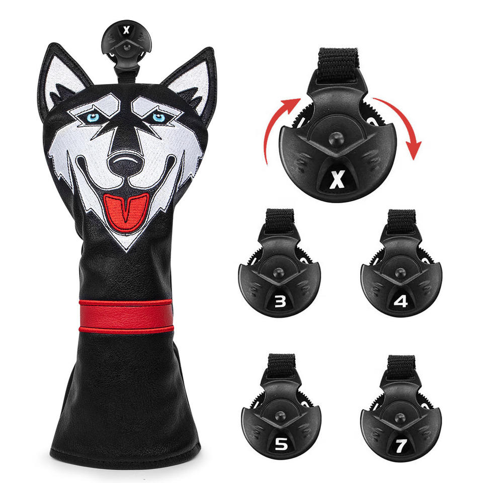 ที่คลุมหัวไม้กอล์ฟแบบปรับแต่งเองได้ผ้าคลุมหัวไม้กอล์ฟหนัง PU ปักลาย Siberian Husky