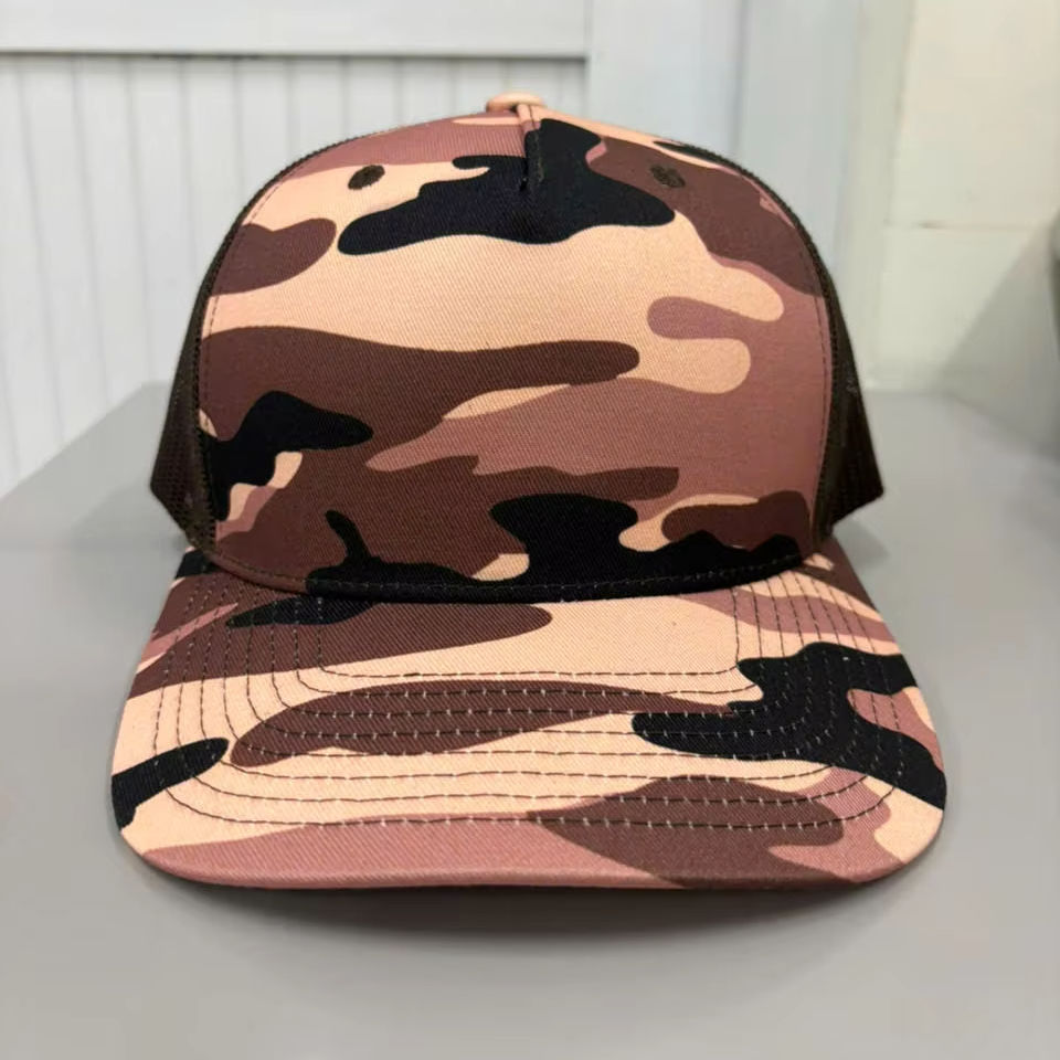 หมวกแก๊ปทรงทรัคเกอร์ลายพรางแบบกำหนดเอง ผ้าแคนวาสโพลีเอสเตอร์ 100% ระบายอากาศได้ดี กันน้ำ เหมาะสำหรับผู้ใหญ่ทุกเพศ ใช้สำหรับเล่นกีฬาและกิจกรรมกลางแจ้ง พิมพ์ลายดิจิตอล/แบบซับลิเมชั่น