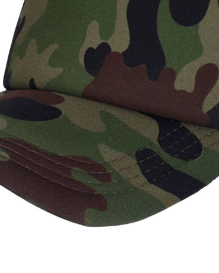 หมวกแก๊ปตาข่ายลายพรางแบบกำหนดเอง ปรับขนาดได้ด้วยตัวล็อคแบบ Snapback ระบายอากาศได้ดี ทำจากโพลีเอสเตอร์ ด้านหน้าบุโฟม โลโก้แบบกำหนดเอง หมวกเบสบอลเปล่า