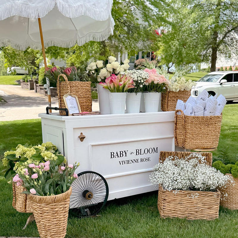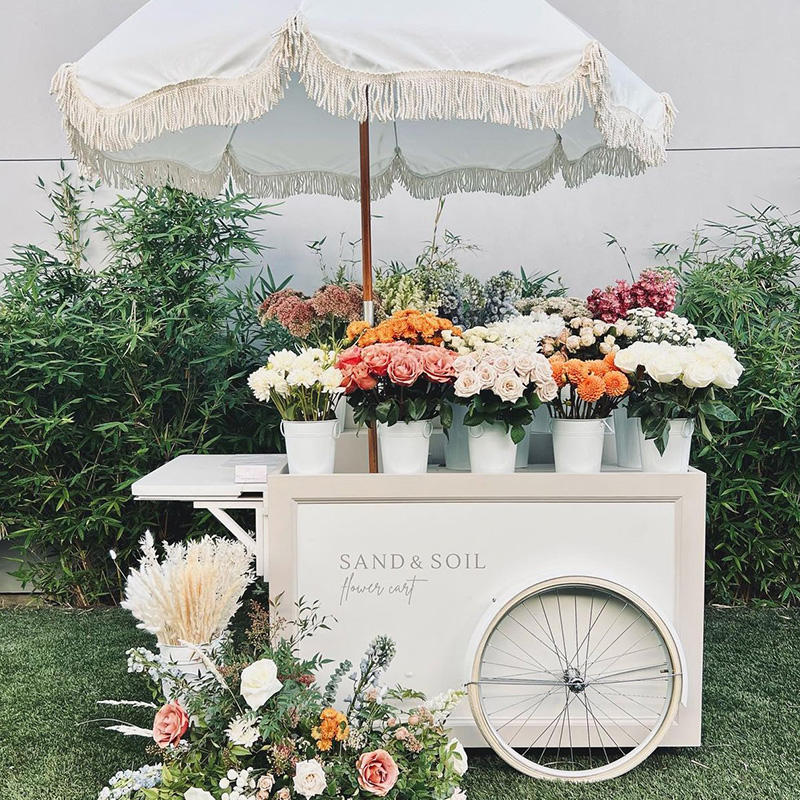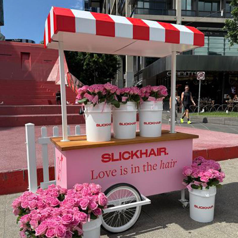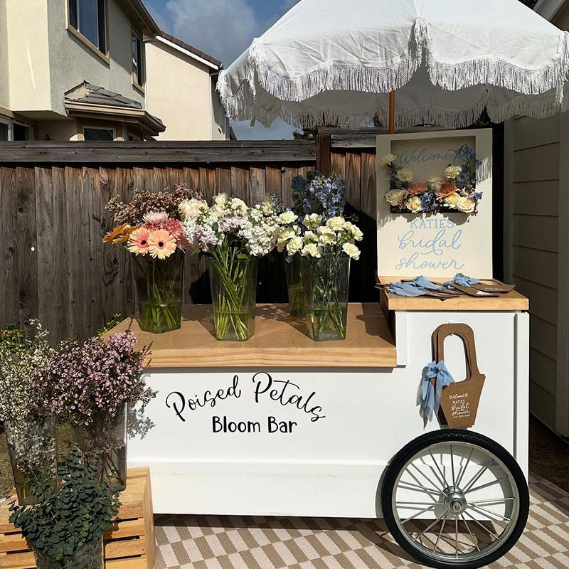 รถเข็นขายขนมแบบกำหนดเอง รถเข็นขายดอกไม้เคลื่อนที่สำหรับจัดแสดงดอกไม้