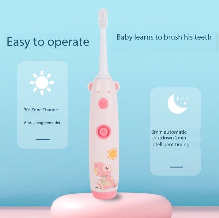แปรงสีฟันไฟฟ้าสำหรับเด็กแบบการ์ตูน - แปรงสีฟันโซนิคแบบนุ่มพร้อมแรงสั่นสะเทือนต่ำเพื่อการดูแลสุขภาพฟันอย่างอ่อนโยน