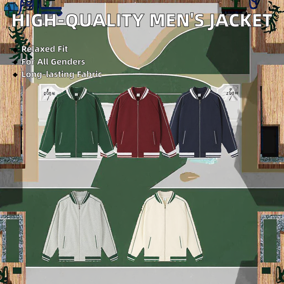 แจ็กเก็ตเบสบอลสำหรับผู้ชายเสื้อแจ็กเก็ตกันหนาวแบบลำลองปกตั้งมีหลายสี