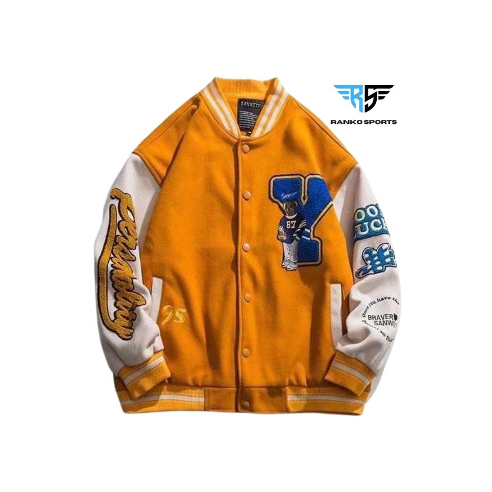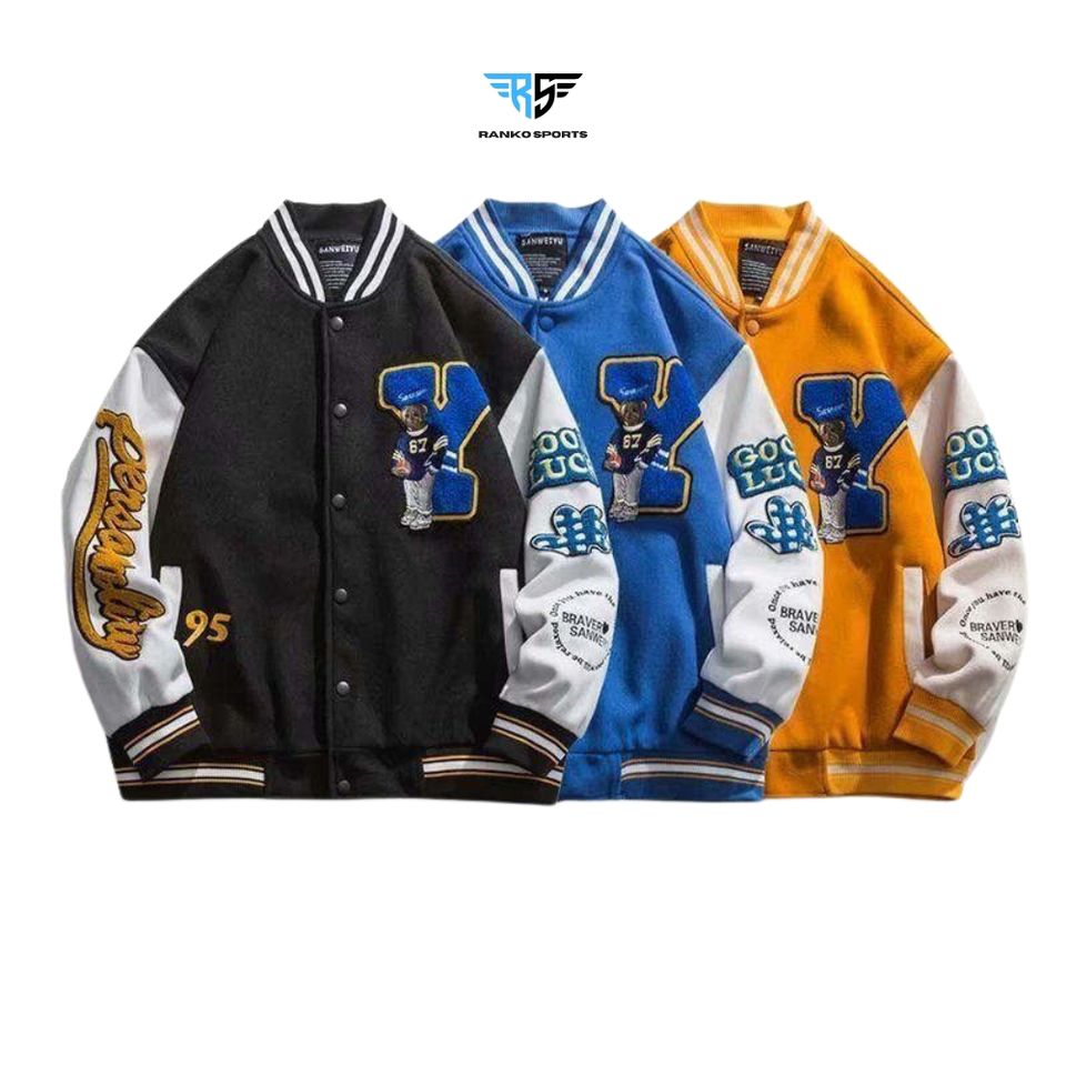 แจ็กเก็ตเบสบอลสำหรับผู้ชายเสื้อแจ็กเก็ตกันหนาวแบบลำลองปกตั้งมีหลายสี