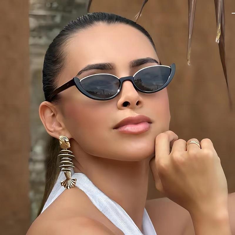แว่นกันแดดทรงแคทอายแบบกำหนดเองสำหรับผู้หญิง กรอบสีดำ เลนส์พีซี ป้องกันรังสียูวี 400 สไตล์อินสตาแกรม แฟชั่นแนวสตรีท