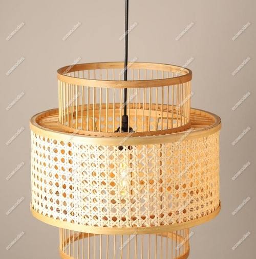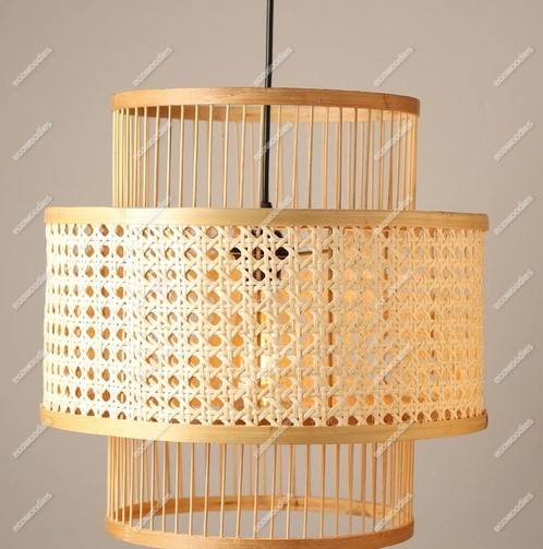 Customized Ceiling Hanging Light Lamp Modern Design Hotel Chandelier Bamboo Wicker Light for High Ceilings Shade