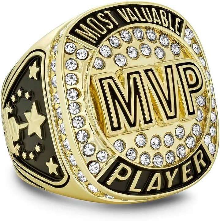 Customized Champion Rose Gold Plated MVP Most Valuable Player Trophy Zinc Alloy Crystal Rhinestone Heart Shape Traditional Ring
