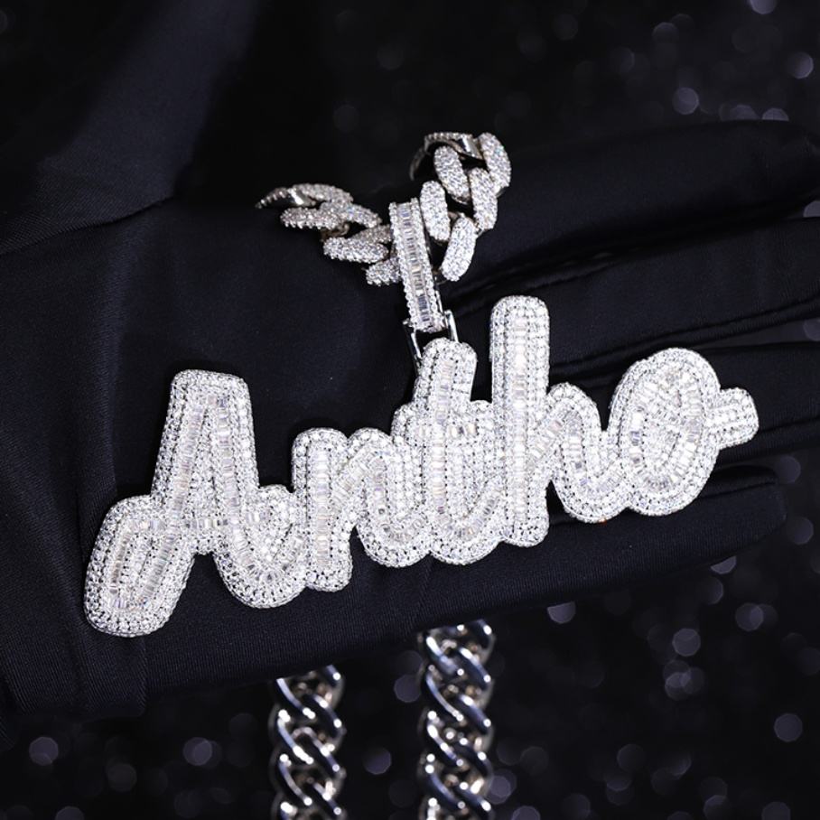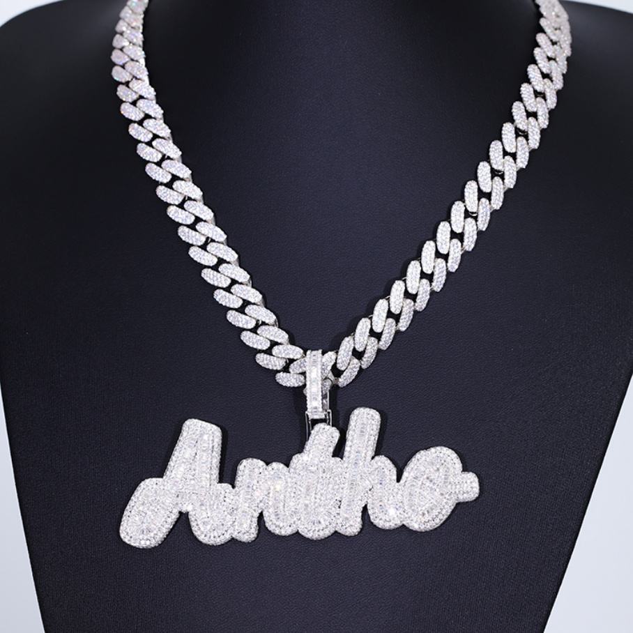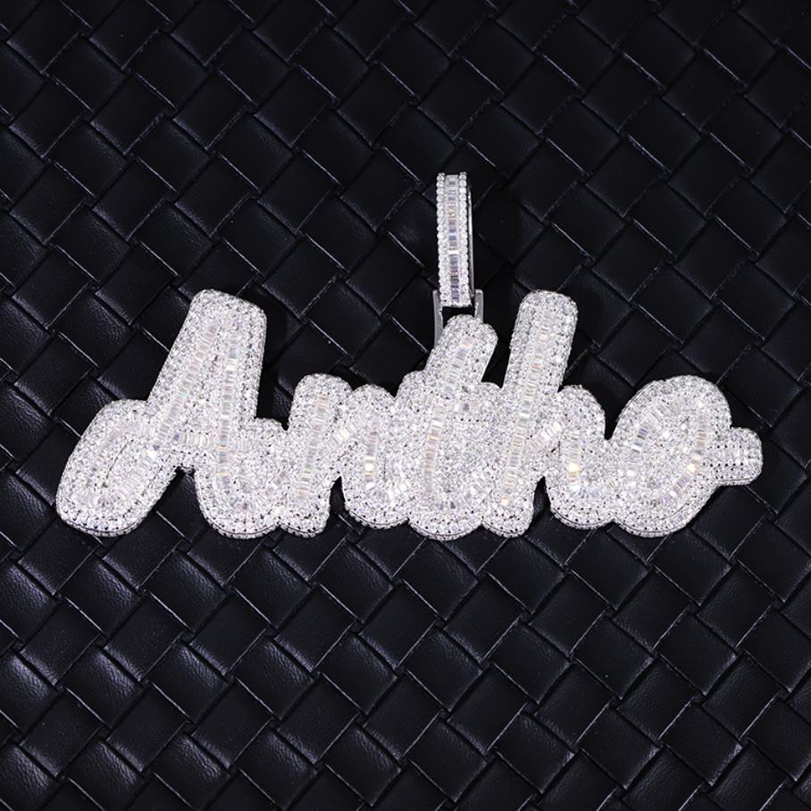 จี้ตัวอักษร ANTHO แบบกำหนดเอง ประดับเพชรโมอิสซาไนต์ทรงบาแก็ตต์ เงินแท้ 925 สำหรับฮิปฮอป สำหรับสร้อยคอ จี้ชื่อ
