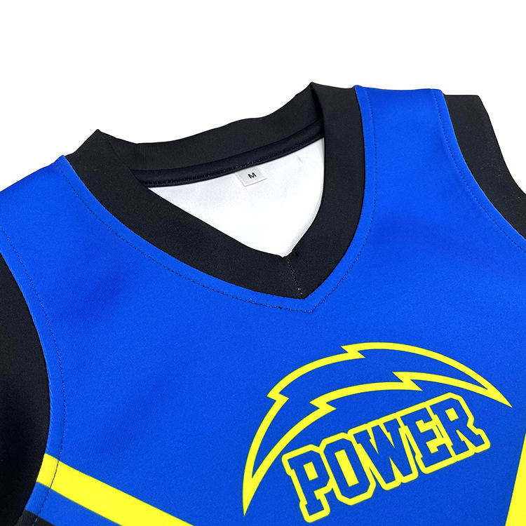 ชุดเชียร์ลีดเดอร์แบบกำหนดเองสุดเซ็กซี่พิมพ์ลายแบบซับลิเมชั่น กระโปรงโพลีเอสเตอร์ 100%