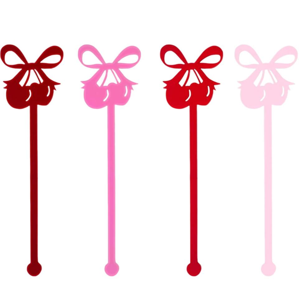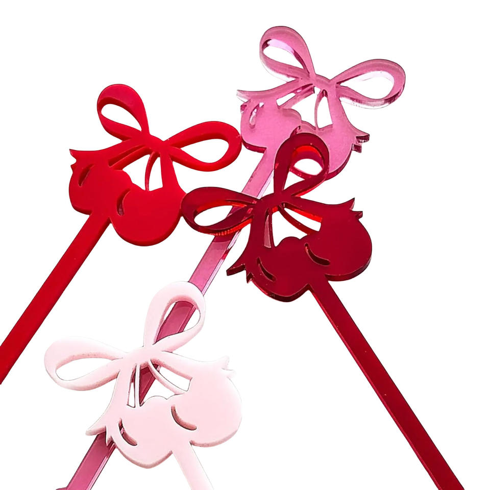 ไม้เสียบค็อกเทลอะคริลิคแบบกำหนดเองลายเชอร์รี่และโบว์ สำหรับตกแต่งงานปาร์ตี้วันวาเลนไทน์และอุปกรณ์เสริมบาร์งานแต่งงาน