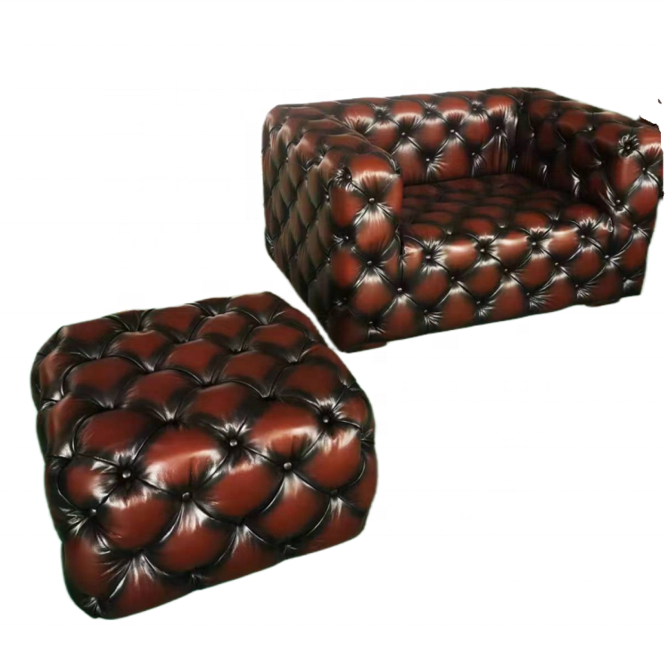 ชุดโซฟาหนังวัวแท้ลายเลือดวัวแบบโบราณออกแบบได้ตามต้องการมีกระดุมแบบหรูหราโซฟาคลับโรงแรมล็อบบี้