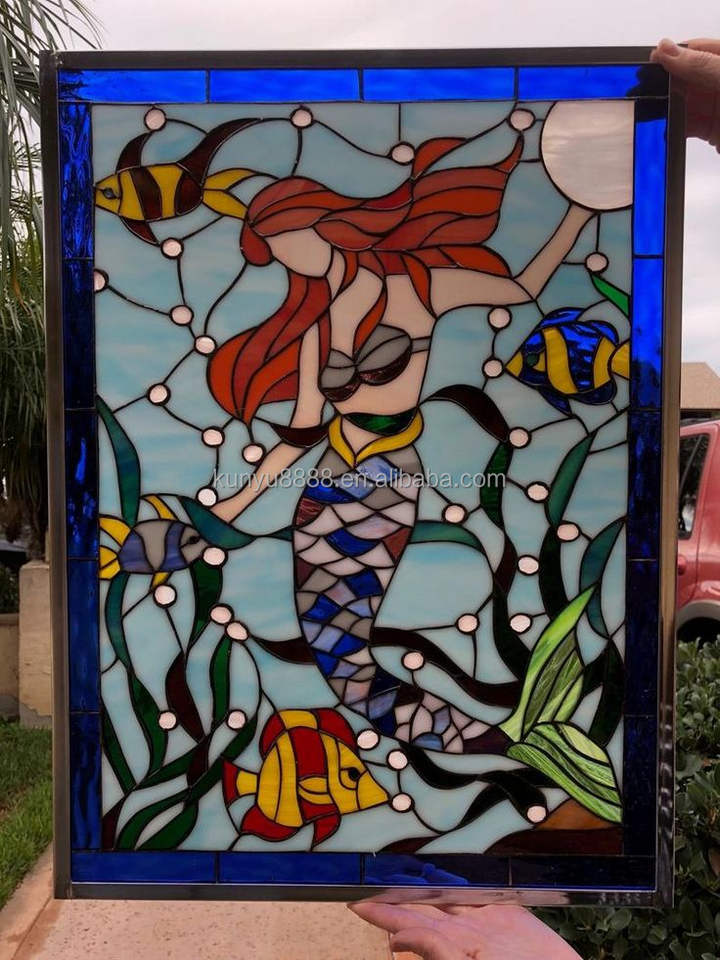 กระจกสีลายคริสตจักรจีนแบบสั่งทำพิเศษสำหรับประตู ผนัง และหน้าต่าง โครงสร้างแข็งแรง ตกแต่งด้วยมือ