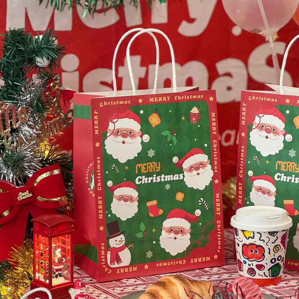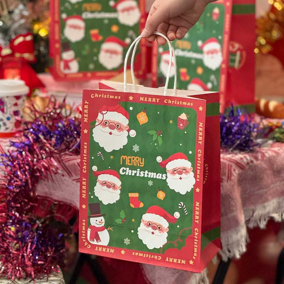 ถุงกระดาษคราฟท์คริสต์มาสแบบกำหนดเองสำหรับร้านกาแฟ ร้านอาหารส่งอาหาร ร้านอาหาร พร้อมเคลือบสีขาว พิมพ์โลโก้