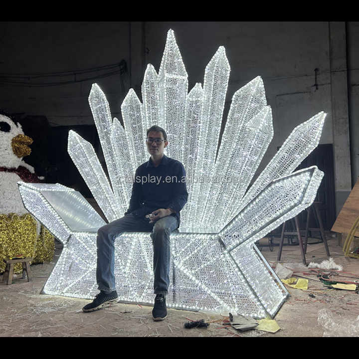 เก้าอี้รอยัลบัลลังก์แช่แข็งพร้อมไฟหนามแหลมตกแต่งขนาดชีวิตคริสต์มาสตามสั่ง