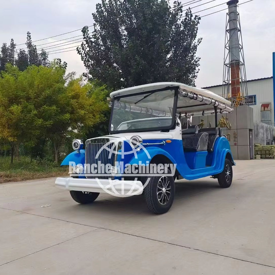 รถคลาสสิคไฟฟ้าแบบกำหนดเองได้ สไตล์เรโทร วินเทจ สำหรับโรงแรมหรู สนามกอล์ฟ รถรับรองวีไอพี แบตเตอรี่ตะกั่วกรด 4-17 ที่นั่ง มอเตอร์ 7.5 กิโลวัตต์