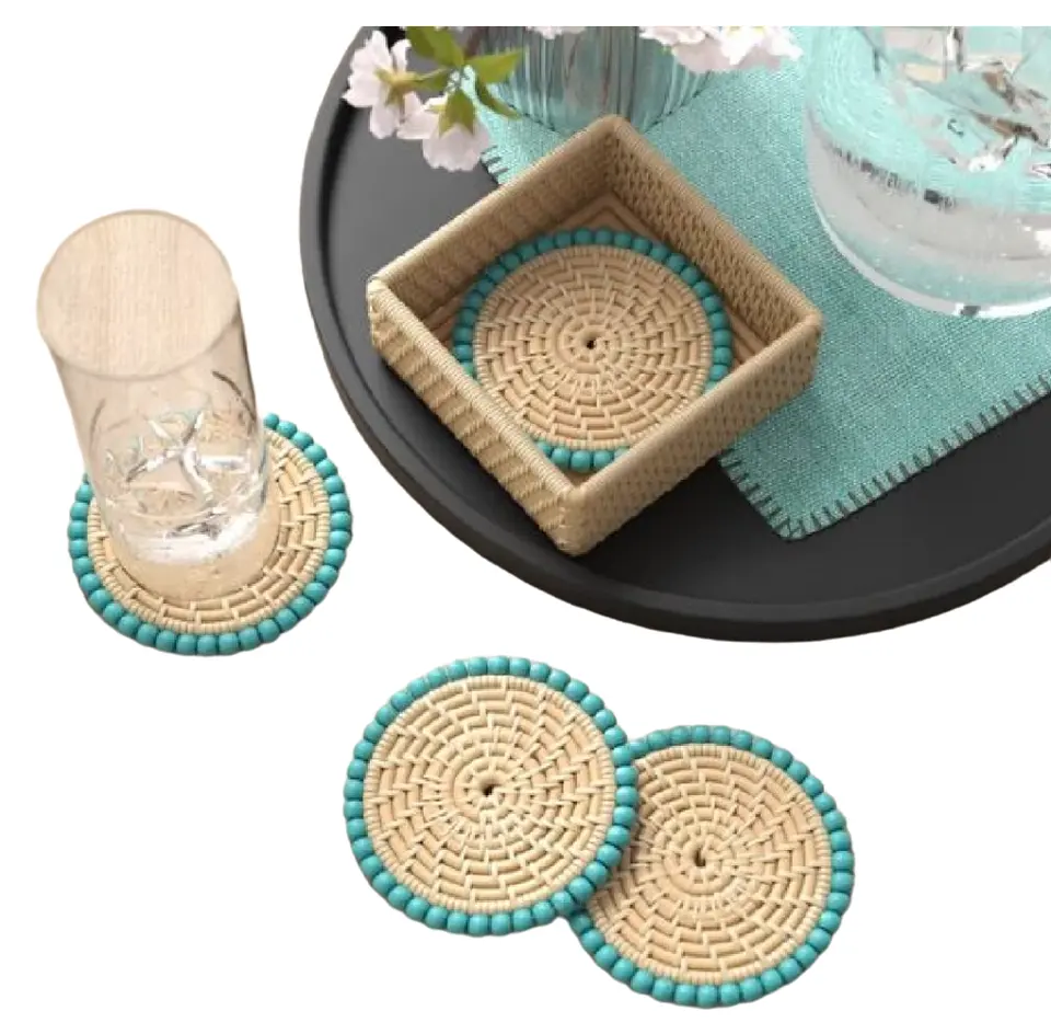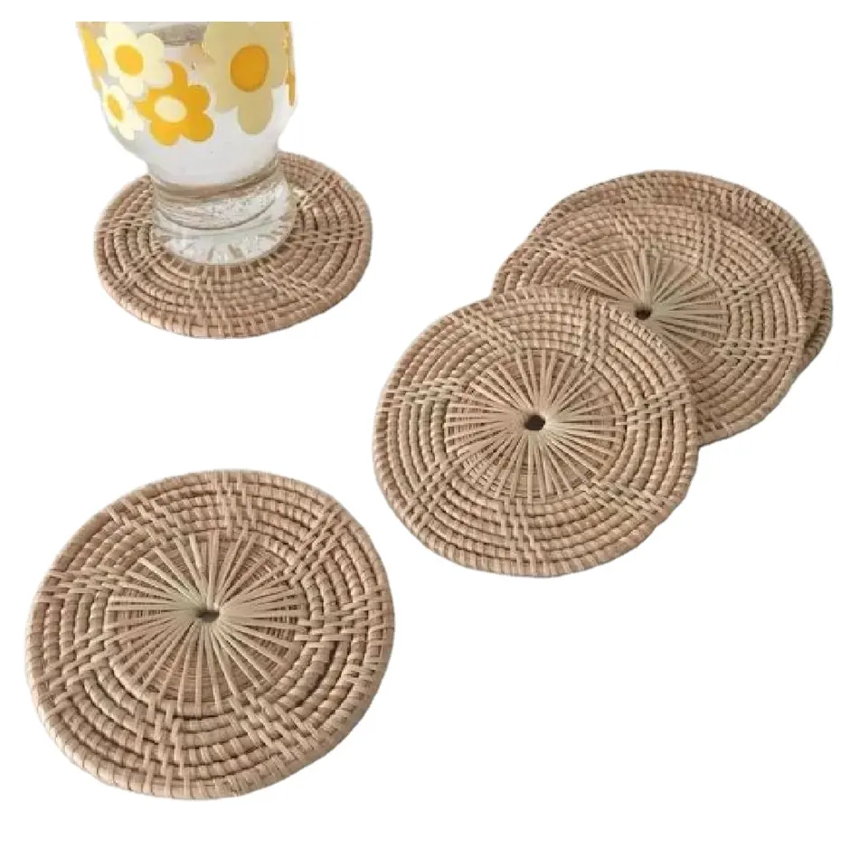 ที่รองแก้วหวายถ้วยชาแบบคลาสสิกที่รองแก้วเครื่องครัวแผ่นรองจานหวายสำหรับร้านอาหารในบ้าน