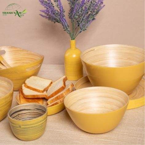 ชามไม้ไผ่ทรงกลมแบบคลาสสิก ผลิตตามสั่ง พร้อมเคลือบสี เป็นมิตรกับสิ่งแวดล้อมและปลอดสารพิษ สำหรับใช้บนโต๊ะอาหารและในบ้าน