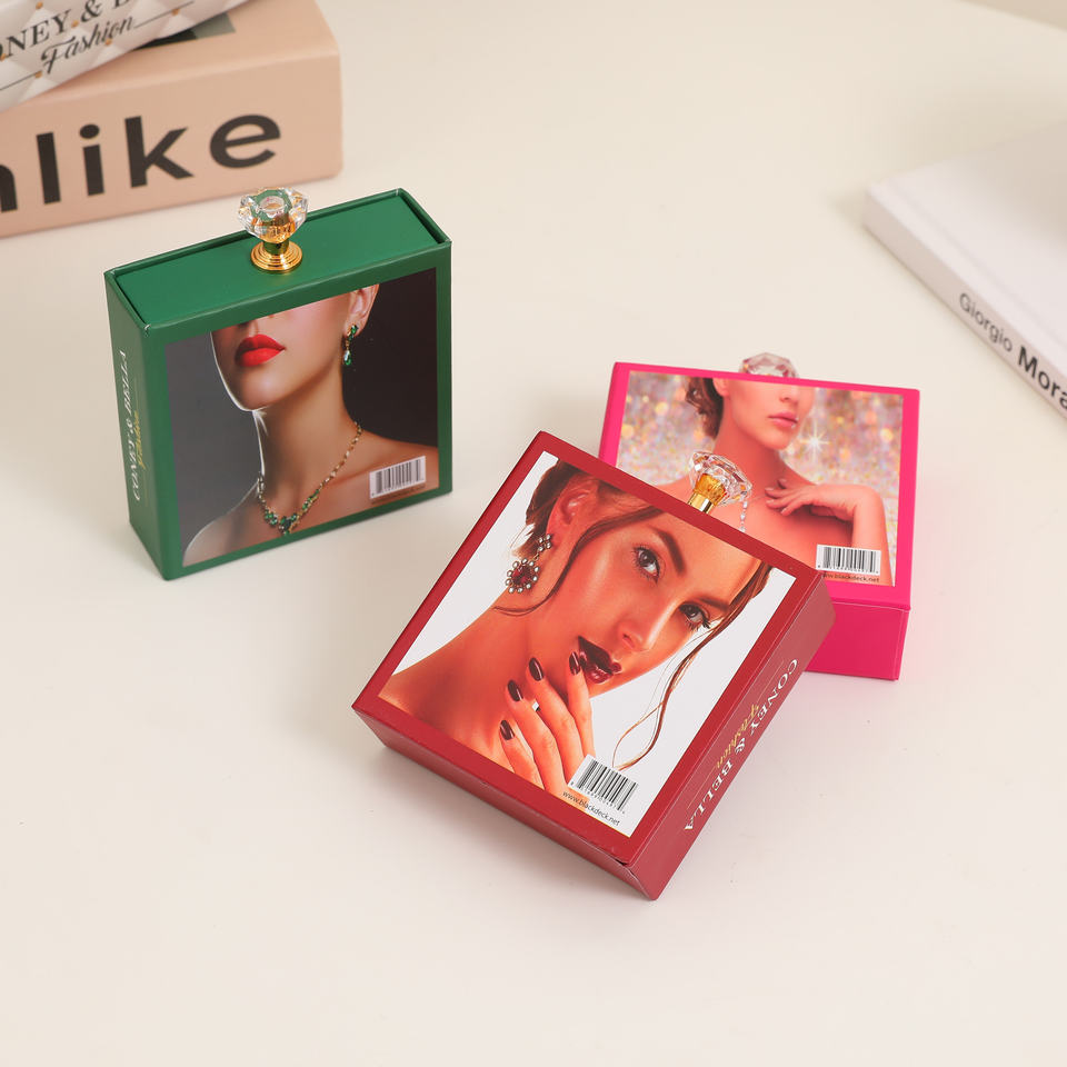 กล่องใส่เครื่องประดับสี่เหลี่ยมหรูหราแบบมีลิ้นชักเลื่อน พร้อมเชือกรูดปิด สำหรับแหวนและต่างหู