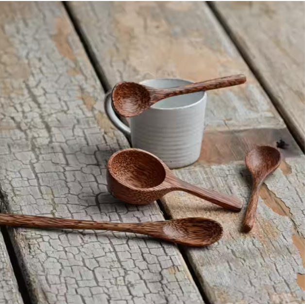 คอลเลกชั่นช้อนไม้มะพร้าวตามสั่งเครื่องครัวทำมือเป็นมิตรต่อสิ่งแวดล้อมสำหรับโต๊ะอาหารและของขวัญชุดเครื่องครัวงานฝีมือ