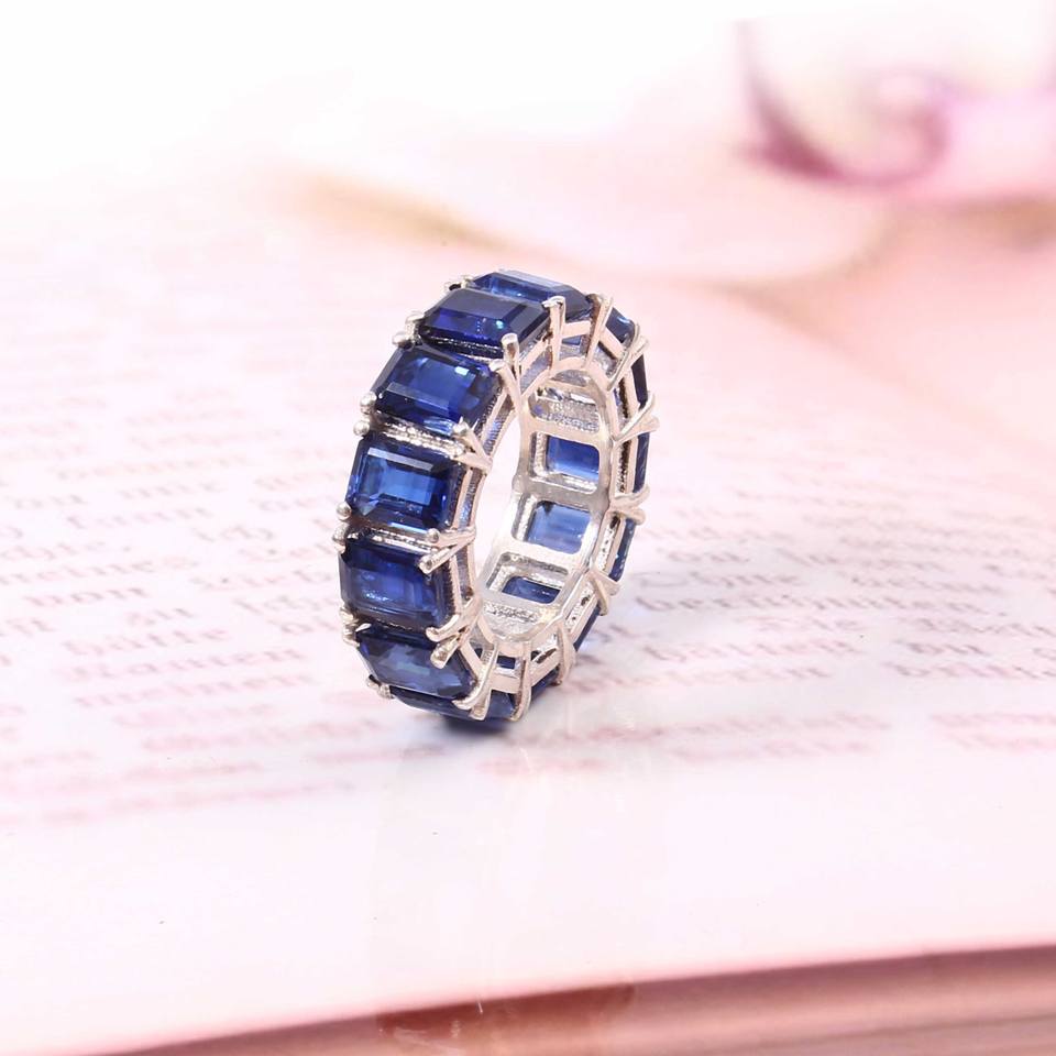 แหวนแต่งงานเงินแท้ 925 สีตามสั่ง ดีไซน์เรียบหรู คลาสสิก ประดับมรกตทรงเหลี่ยม 5*7 มม. แบบแท่ง 13 ชิ้น สำหรับผู้หญิง ประดับด้วยไคยาไนต์ธรรมชาติ
