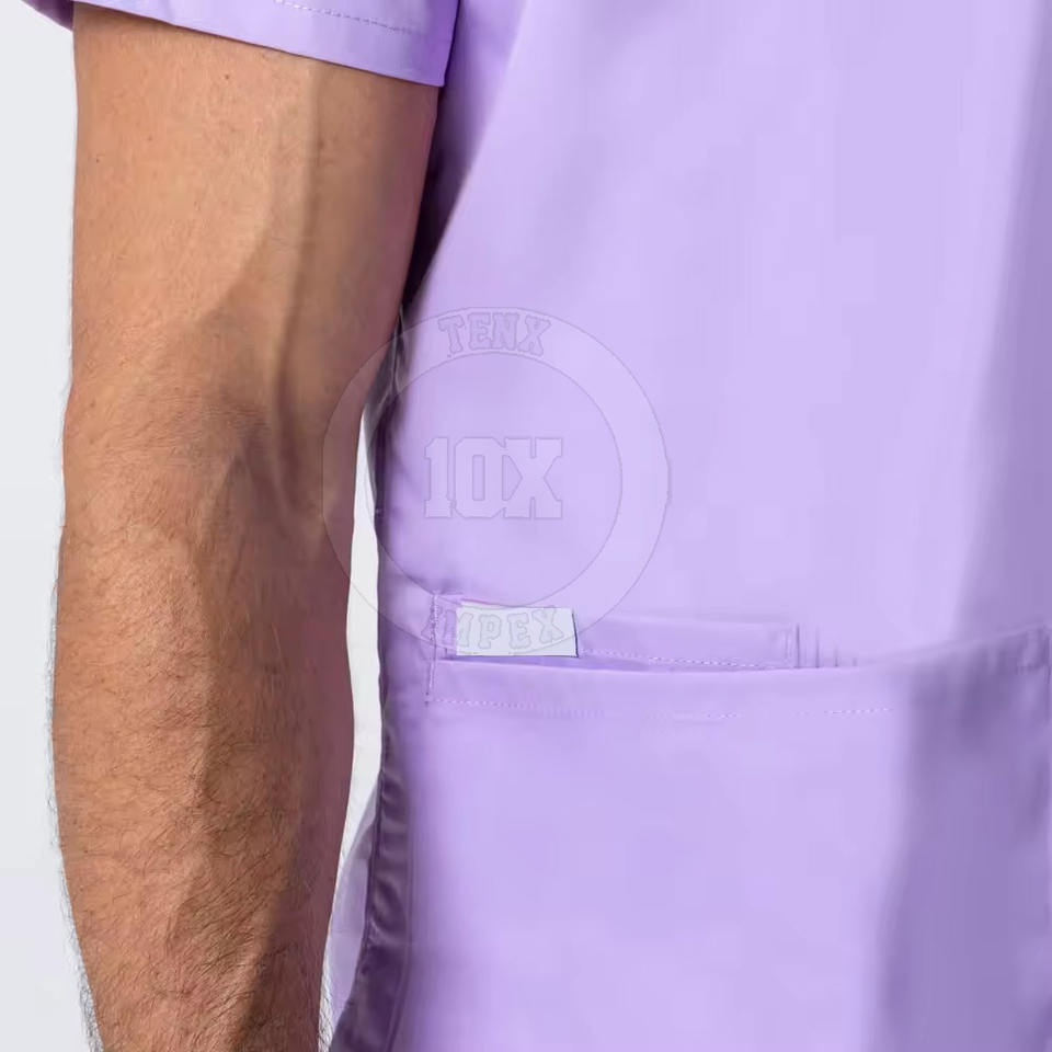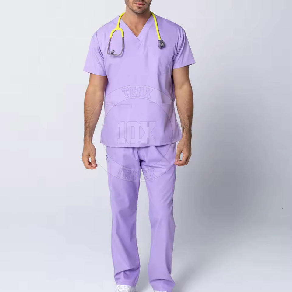 ชุดสครับสำหรับโรงพยาบาลของผู้ชายชุดสครับสีพื้นดีไซน์แบบกำหนดเอง