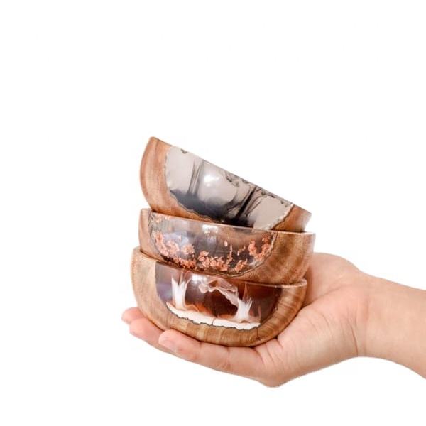 ชามใส่อาหารแบบข้อต่อทำจากไม้อีพ็อกซี่เรซิ่นสีตามสั่ง