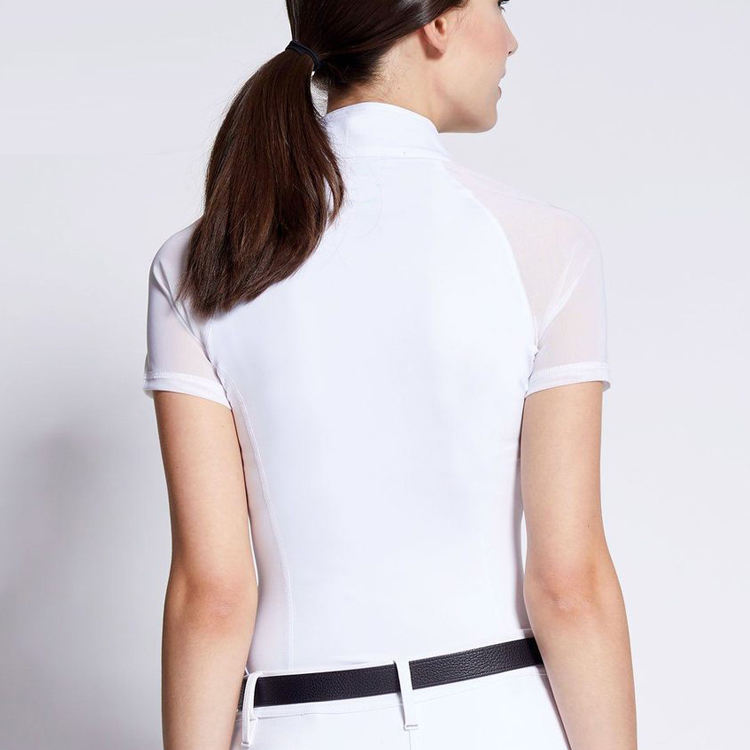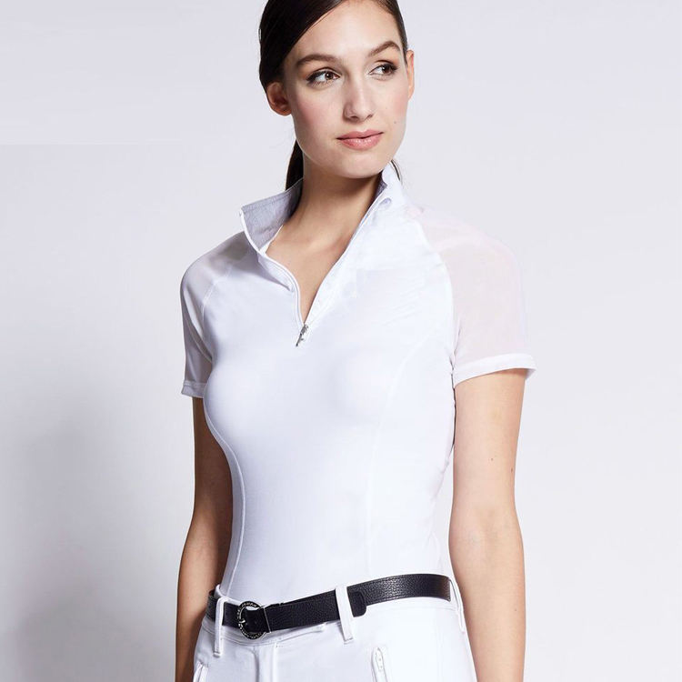 เสื้อเชิ้ตสำหรับนักขี่ม้าหญิงแบบสั่งทำสีได้ ผ้าระบายอากาศและยืดหยุ่น เสื้อแข่งขันกีฬาขี่ม้ารุ่นใหม่