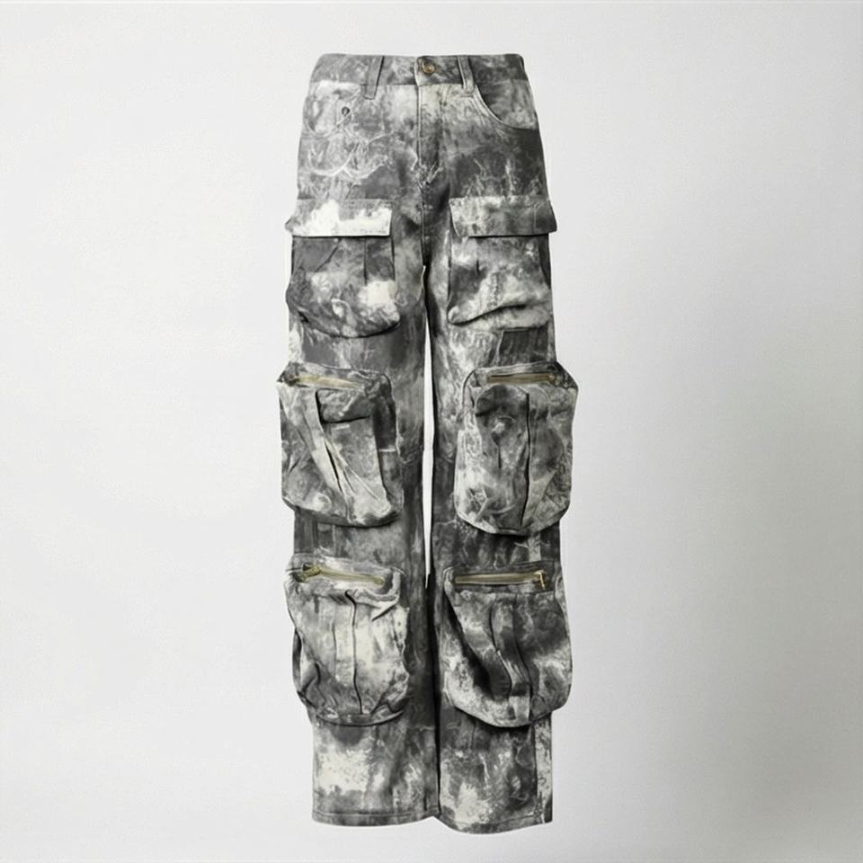 กางเกงยีนส์สีตามสั่ง หลายกระเป๋า ผู้หญิง ขายาว ทรงคาร์โก้ เอวสูง สไตล์ลำลอง แฟชั่นสตรีทแวร์